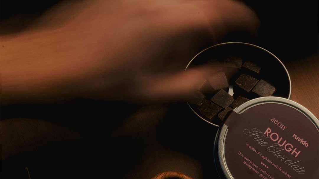 ruvido chocolate bites – Our 75% West Papua Ransiki Don the Beachcomber made into small, imperfect pieces. These cubes are designed to linger and reward the patient. Naturally taste of passionfruit.
